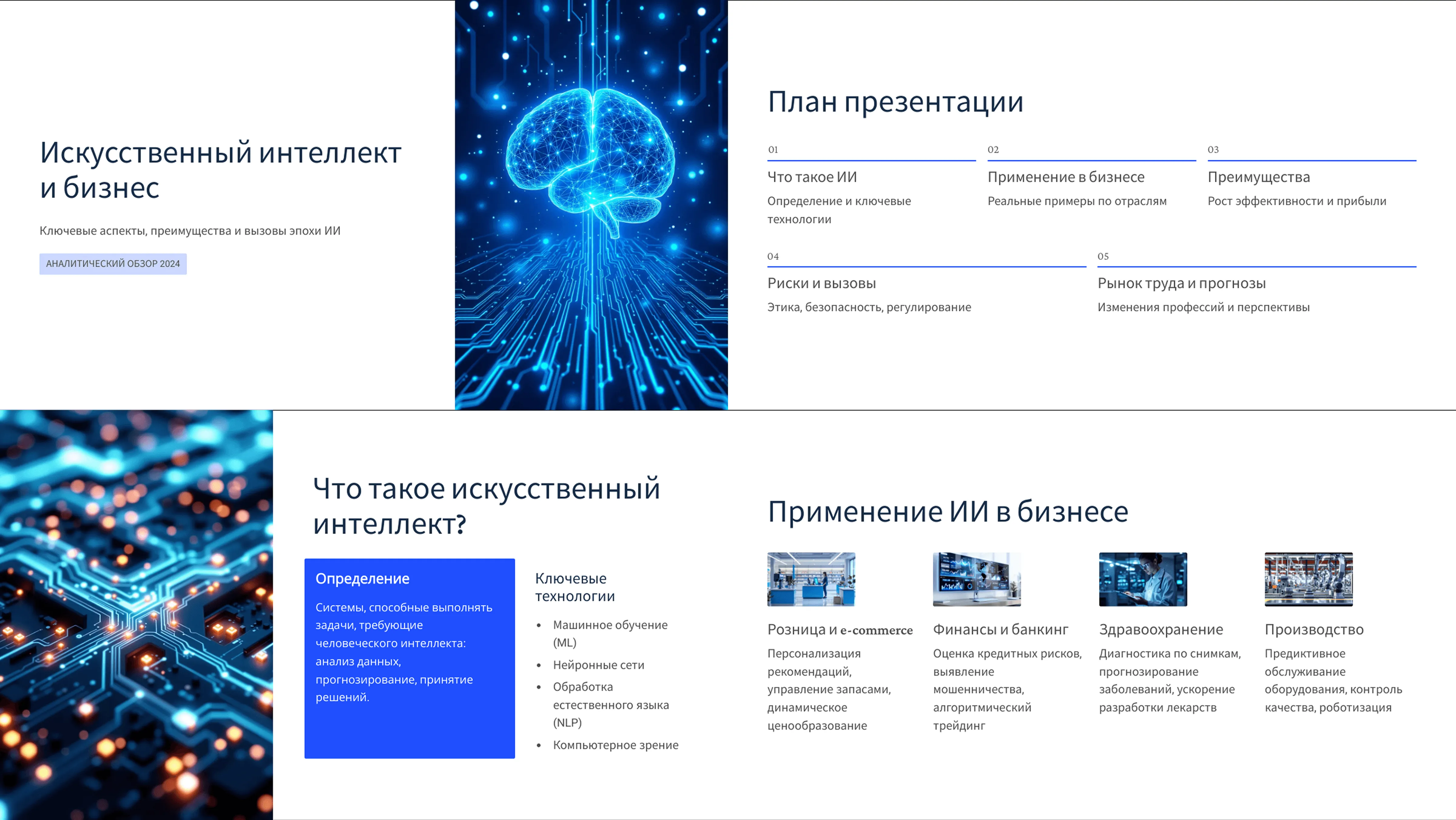 Нейросеть создаёт презентацию по вашей теме - с готовой структурой, картинками и текстами